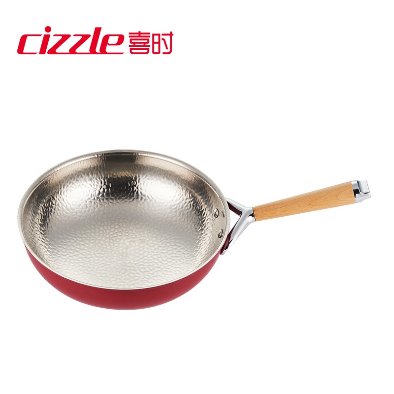 C1320【拾色】轻量级锤纹不锈钢炒锅30cm 酡红